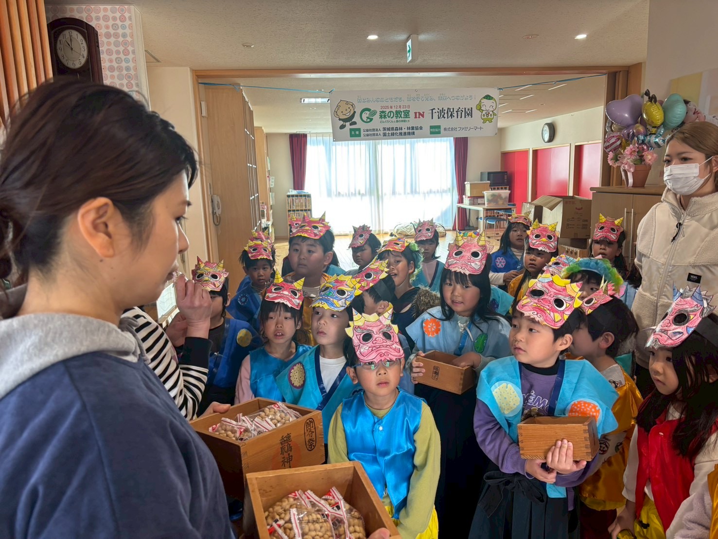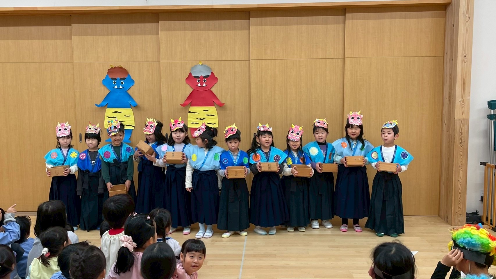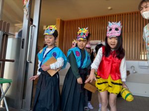 サクラ・ローズ組のお友達が鬼と年男・年女になり、各クラスに回って豆まきを盛り上げてくれました!
