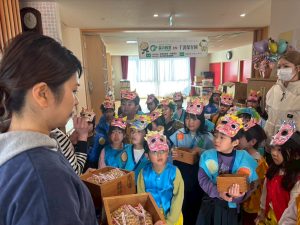「おにのパンツ」のお遊戯を踊ったり、節分についてのクイズに挑戦したりなど、楽しい会になりました👹
